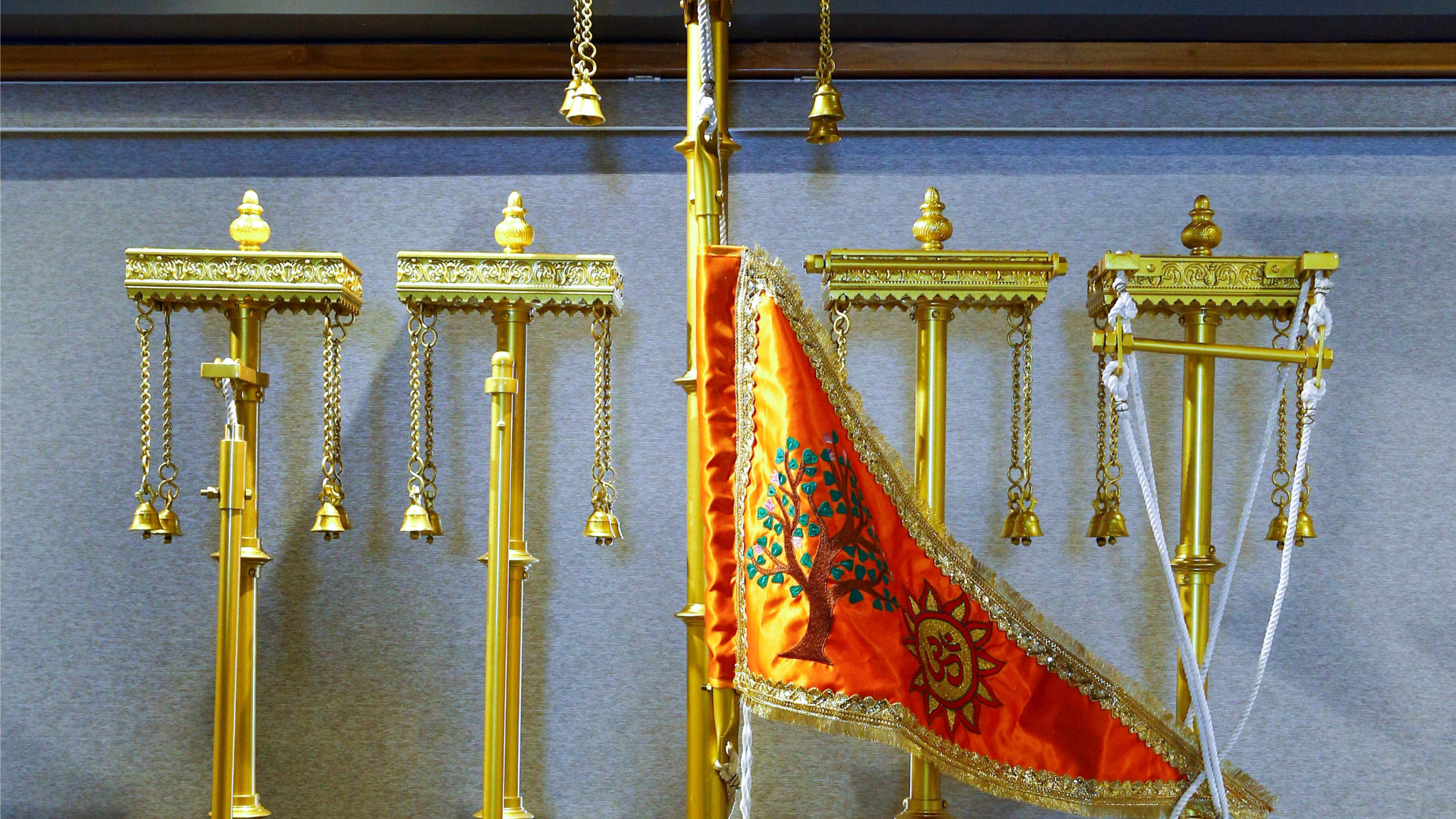 A Dhwaj placed atop a temple serves as a visual declaration of Dharma, reminding people of righteousness.