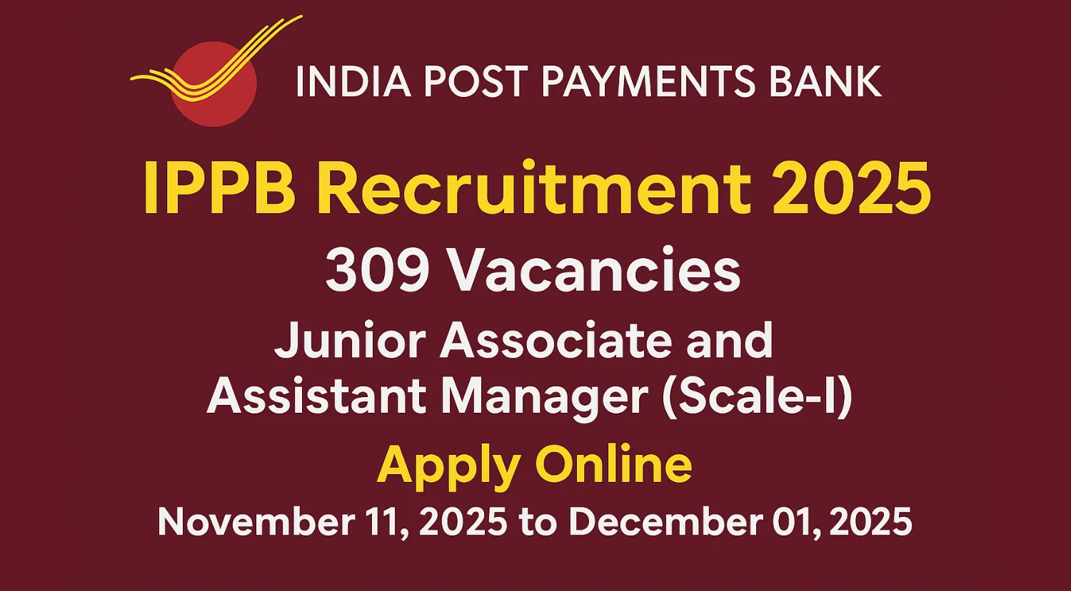 India Post Payments Bank Recruitment 2025: Apply for 309 Junior Associate & Assistant Manager Posts